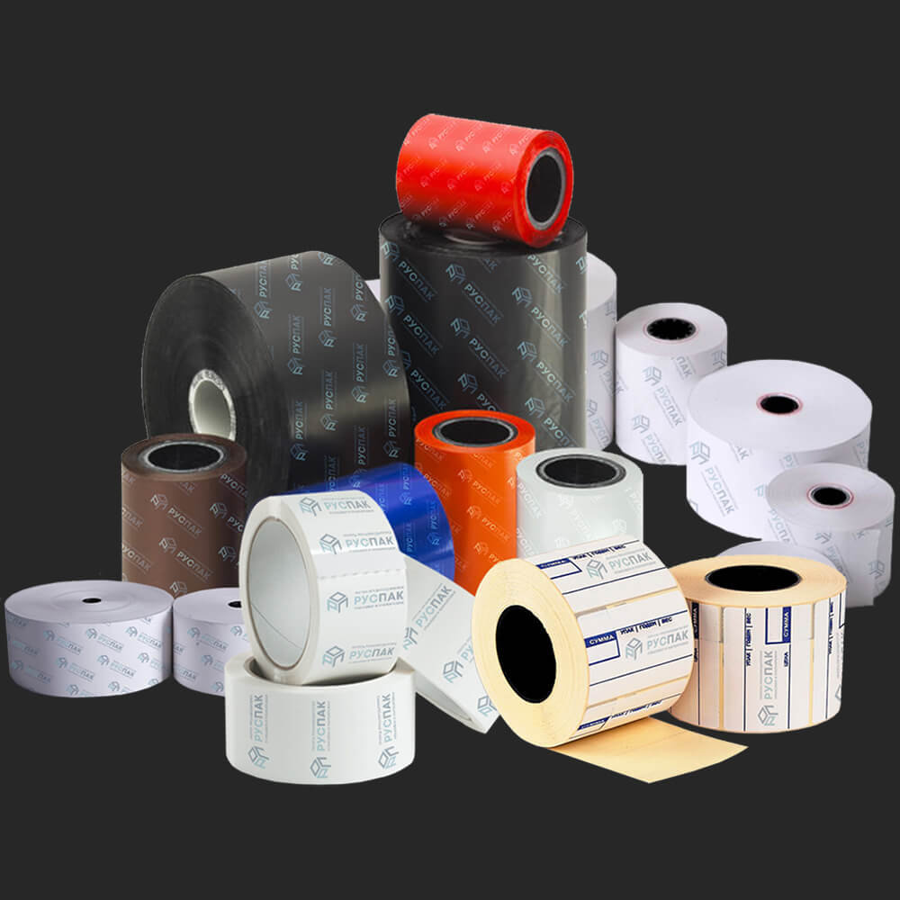 У нас есть ролики, ленты, самоклеющиеся этикетки, этикетки для мягкой упаковки, этикетки для твердой упаковки, этикетки для стеклянной продукции, термоэтикетки, термокартон, риббоны.
