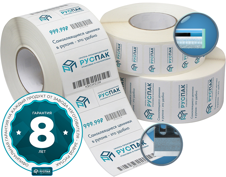 В нашей продукции используется только сырье Fasson крупнейшего мирового производителя. Ленты с биоразлогаемыми втулками и белизной 92%.